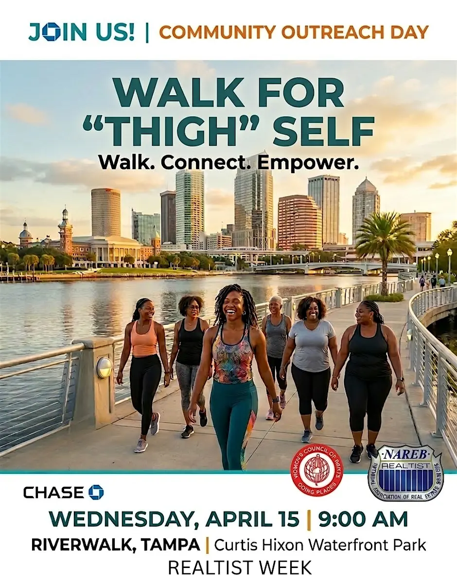 Walk For “THIGH” Self: A Morning of Connection, Empowerment, and Community Tampa Bay Connects is excited to reshare an inspiring community event focused on wellness, empowerment, and meaningful connections. Walk For “THIGH” Self – Walk. Connect. Empower. will be held on Wednesday, April 15, from 9:00 AM to 12:00 PM at Curtis Hixon Waterfront Park in Tampa, Florida. This empowering event is organized in collaboration with the Bay Area Women Council and NAREB (National Association of Real Estate Brokers). Attendees can look forward to a refreshing walk, opportunities to network, and a supportive environment that encourages personal growth and community engagement. Whether you’re looking to stay active, meet like-minded individuals, or simply enjoy a beautiful morning outdoors, this event offers something for everyone. Event Details: Event Name: Walk For “THIGH” Self – Walk. Connect. Empower. Organizers: Bay Area Women Council & NAREB Location: Curtis Hixon Waterfront Park, Tampa, FL Date & Time: Wednesday, April 15 | 9:00 AM – 12:00 PM Registration: https://www.eventbrite.com/e/walk-for-thigh-self-walk-connect-empower-tickets-1985419416922?aff=ebdssbdestsearch Follow the Organizers: Facebook: https://www.facebook.com/BayAreaWomenCouncil/ Website: https://www.nareb.com/ Instagram: https://www.instagram.com/nareb_realtists/ #Tampa #TampaBay #StPete #Clearwater #ThingsToDo #LocalEvents #Networking #TampaBayConnects #TampaNetworking #WomenInBusiness #TampaEntrepreneurs #Startups #TampaEats #TampaNightlife #DowntownTampa #TampaEvents #TampaSocials #tampaMagazine #TampaBayMagazine TampaBusinessClub.com Tampabayconnects.com WomenImpactNetwork.com TampaBayLatinChamber.com InGateConsulting.com 🔗 Registration: https://www.eventbrite.com/e/walk-for-thigh-self-walk-connect-empower-tickets-1985419416922?aff=ebdssbdestsearch Tampa Bay Connects is a community discovery and media platform. We do not organize, host, manage, or operate the events featured on this site. All events, trademarks, logos, photographs, and promotional materials are the property of their respective owners and are displayed for informational and promotional purposes only. Our content is shared to help connect the community with local experiences and is sourced from public event listings, organizers, or official promotional channels. Full credit is given to the original event organizers, and direct links to official event pages are provided whenever available. Inclusion on TampaBayConnects.com does not imply sponsorship, partnership, or endorsement by Tampa Bay Connects, unless explicitly stated. tampabayconnects