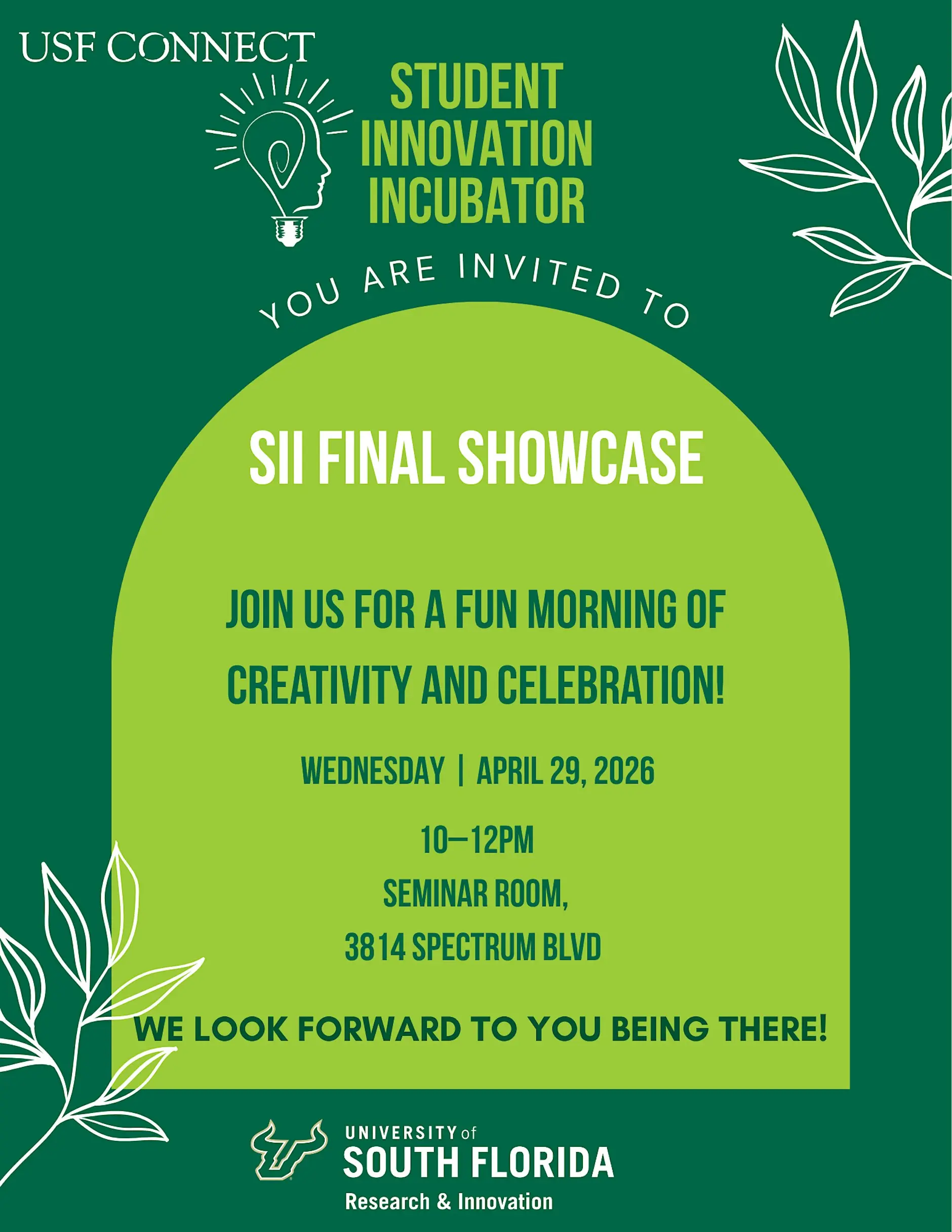💡 Student Innovation Incubator Final Showcase – Tampa, FL Tampa Bay is invited to witness the next generation of ideas at the Student Innovation Incubator Final Showcase, a dynamic event highlighting student-led projects, research breakthroughs, and innovative solutions developed through the incubation program. The showcase is organized by the University of South Florida Research & Innovation / USF Research Foundation, supporting student entrepreneurship and advancing innovation-driven research across disciplines. 📅 Event Details Event Name: Student Innovation Incubator Final Showcase Organizer: USF Research & Innovation / USF Research Foundation Location: 3814 Spectrum Blvd, Tampa, Florida Date: Wednesday, April 29 Time: 10:00 AM – 12:00 PM 🎟️ Registration Link 👉https://www.eventbrite.com/e/student-innovation-incubator-final-showcase-tickets-1987394789314?aff=ebdssbdestsearch 🌐 Organizer Links Website: https://www.usf.edu/research-innovation/innovation-enterprise/usf-research-foundation/index.aspx Instagram: https://www.instagram.com/usfresearch/ 📝 About This Post Tampa Bay Connects is a reshare platform sharing community events for informational purposes only. We do not host, organize, or manage these events. Please contact the official organizers for full details and updates. #Tampa #TampaBay #StPete #Clearwater #ThingsToDo #LocalEvents #Networking #TampaBayConnects #TampaNetworking #WomenInBusiness #TampaEntrepreneurs #Startups #TampaEats #TampaNightlife #DowntownTampa #TampaEvents #TampaSocials #tampaMagazine #TampaBayMagazine TampaBusinessClub.com Tampabayconnects.com WomenImpactNetwork.com TampaBayLatinChamber.com InGateConsulting.com 🔗 Register here: https://www.eventbrite.com/e/student-innovation-incubator-final-showcase-tickets-1987394789314?aff=ebdssbdestsearch Tampa Bay Connects is a community discovery and media platform. We do not organize, host, manage, or operate the events featured on this site. All events, trademarks, logos, photographs, and promotional materials are the property of their respective owners and are displayed for informational and promotional purposes only. Our content is shared to help connect the community with local experiences and is sourced from public event listings, organizers, or official promotional channels. Full credit is given to the original event organizers, and direct links to official event pages are provided whenever available. Inclusion on TampaBayConnects.com does not imply sponsorship, partnership, or endorsement by Tampa Bay Connects, unless explicitly stated. tampabayconnects