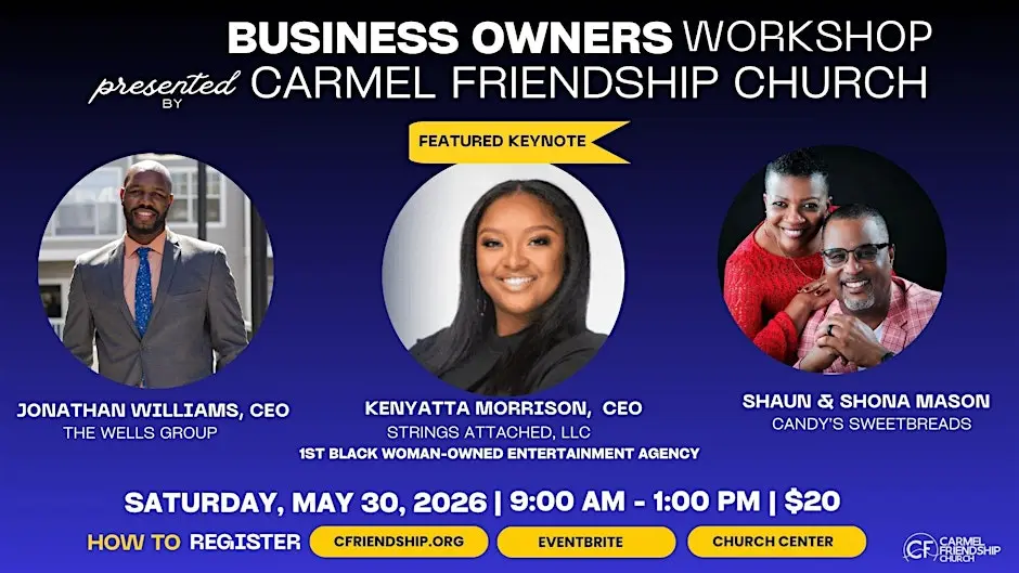 📊 Business Owners Workshop | Wesley Chapel Level up your business strategies and connect with fellow entrepreneurs at the Business Owners Workshop, hosted by Carmel Friendship Church. This insightful event is designed to support business owners with practical tools, guidance, and opportunities to grow and succeed. The workshop will take place at Carmel Friendship Church in Wesley Chapel, FL on Saturday, May 30 from 9:00 AM to 1:00 PM, offering a focused and collaborative environment for learning and networking. 🗓 Date & Time: Saturday, May 30 | 9:00 AM – 1:00 PM 📍 Location: Carmel Friendship Church, Wesley Chapel, FL 🎟 Register here: https://www.eventbrite.com/e/business-owners-workshop-tickets-1985379147475?aff=ebdssbdestsearch 🌐 Organizer Website: https://www.cfriendship.org/ 📱 Social Media: Instagram: https://www.instagram.com/carmelfriendship/ Whether you’re just starting out or looking to scale your business, this workshop provides a valuable opportunity to gain insights and connect with like-minded professionals in the Tampa Bay area. #Tampa #TampaBay #StPete #Clearwater #ThingsToDo #LocalEvents #Networking #TampaBayConnects #TampaNetworking #WomenInBusiness #TampaEntrepreneurs #Startups #TampaEats #TampaNightlife #DowntownTampa #TampaEvents #TampaSocials #tampaMagazine #TampaBayMagazine TampaBusinessClub.com Tampabayconnects.com WomenImpactNetwork.com TampaBayLatinChamber.com InGateConsulting.com 🔗 Register here: https://www.eventbrite.com/e/business-owners-workshop-tickets-1985379147475?aff=ebdssbdestsearch Tampa Bay Connects is a community discovery and media platform. We do not organize, host, manage, or operate the events featured on this site. All events, trademarks, logos, photographs, and promotional materials are the property of their respective owners and are displayed for informational and promotional purposes only. Our content is shared to help connect the community with local experiences and is sourced from public event listings, organizers, or official promotional channels. Full credit is given to the original event organizers, and direct links to official event pages are provided whenever available. Inclusion on TampaBayConnects.com does not imply sponsorship, partnership, or endorsement by Tampa Bay Connects, unless explicitly stated. tampabayconnects