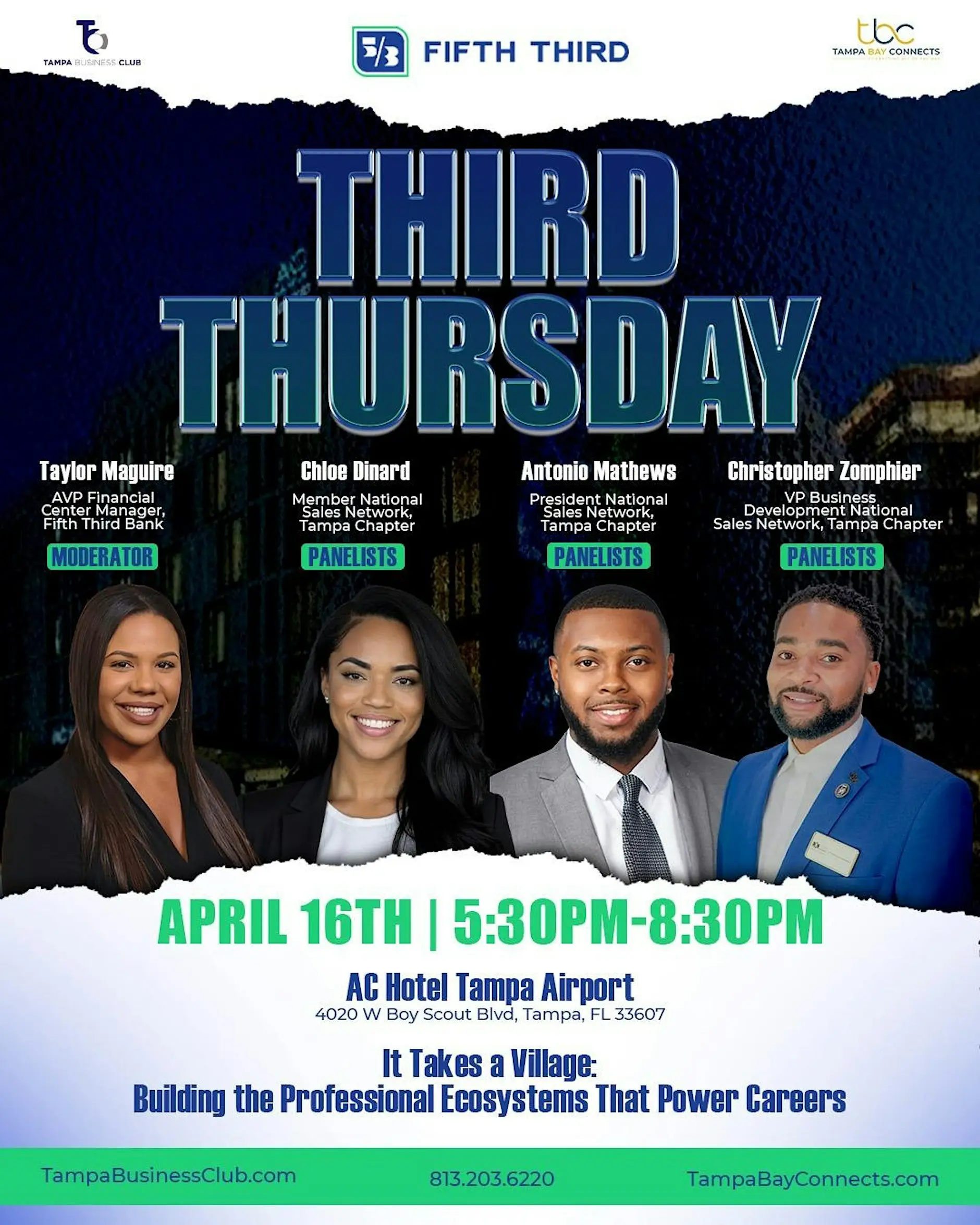 3rd Thursday Networking Firechat Brings Tampa Professionals Together TAMPA, FL — Professionals across the Tampa Bay area are invited to connect, collaborate, and grow at the upcoming 3rd Thursday Networking Firechat, a dynamic event expected to welcome over 150 attendees. Organized by the Tampa Business Club, this gathering offers a valuable opportunity for entrepreneurs, business owners, and professionals to expand their networks in a relaxed and engaging environment. The event will take place on Thursday, April 16, from 5:30 PM to 8:30 PM at the AC Hotel Tampa Airport, providing a modern and convenient setting for meaningful conversations and business connections. Best of all, admission is free, making it accessible for anyone looking to build relationships within the local business community. Attendees can expect an evening of networking, idea-sharing, and insightful discussions designed to spark collaboration and professional growth. Whether you’re a seasoned entrepreneur or just starting out, this event offers a welcoming space to engage with like-minded individuals. To learn more and secure your spot, visit the registration page here: 👉 https://www.eventbrite.com/e/3rd-thursday-networking-firechat-150-attendees-free-admission-tickets-1985642210303?aff=ebdssbdestsearch Stay connected with the organizers: 🌐 Website: https://tampabusinessclub.com/ 📸 Instagram: https://www.instagram.com/tampabusinessclub/ 📘 Facebook: https://www.facebook.com/tampabusinessclub/ #Tampa #TampaBay #StPete #Clearwater #ThingsToDo #LocalEvents #Networking #TampaBayConnects #TampaNetworking #WomenInBusiness #TampaEntrepreneurs #Startups #TampaEats #TampaNightlife #DowntownTampa #TampaEvents #TampaSocials #tampaMagazine #TampaBayMagazine TampaBusinessClub.com Tampabayconnects.com WomenImpactNetwork.com TampaBayLatinChamber.com InGateConsulting.com 🔗 Register here: https://www.eventbrite.com/e/3rd-thursday-networking-firechat-150-attendees-free-admission-tickets-1985642210303?aff=ebdssbdestsearch Tampa Bay Connects is a community discovery and media platform. We do not organize, host, manage, or operate the events featured on this site. All events, trademarks, logos, photographs, and promotional materials are the property of their respective owners and are displayed for informational and promotional purposes only. Our content is shared to help connect the community with local experiences and is sourced from public event listings, organizers, or official promotional channels. Full credit is given to the original event organizers, and direct links to official event pages are provided whenever available. Inclusion on TampaBayConnects.com does not imply sponsorship, partnership, or endorsement by Tampa Bay Connects, unless explicitly stated. tampabayconnects