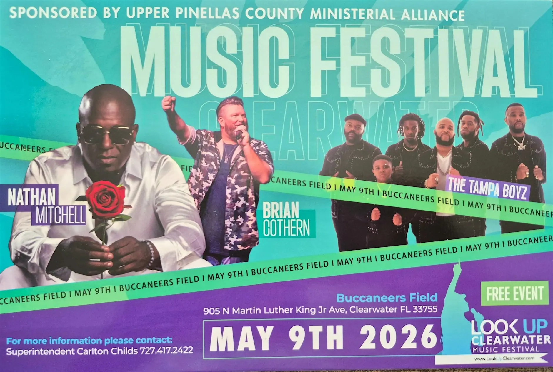 Look Up Clearwater Music Festival – Clearwater, Florida Tampa Bay Connects is excited to reshare this uplifting music festival experience in Clearwater! Hosted by New Generations Ministries, the Look Up Clearwater Music Festival is a free community event filled with live music, inspiration, and powerful moments of connection. This faith-centered gathering brings people together for a day of praise, performances, and community celebration. 📍 Location: Doctor Martin Luther King Jr. Street North, Clearwater, FL 📅 Date: Saturday, May 9, 2026 ⏰ Time: 12:00 PM – 8:00 PM This event invites attendees to enjoy live music and a welcoming atmosphere that encourages reflection, joy, and community unity. 🔗 Register here: https://www.eventbrite.com/e/look-up-clearwater-music-festival-tickets-1985610476386?aff=ebdssbdestsearch 📲 Connect & Learn More: Facebook: https://www.facebook.com/NewGenerationsMinistries/posts/mark-your-calendars-for-this-music-festivalfree-event-may-9-2026-12-noonmusic-fo/948278704423108/ Instagram Reel: https://www.instagram.com/reel/DWSHMciDu_Z/ 📞 Contact Information: Superintendent Carlton Childs: 727-417-2422 Apostle Norma Fontaine Philbert: 813-654-2656 Pastor Sandra Wilson: 407-375-1433 #Tampa #TampaBay #StPete #Clearwater #ThingsToDo #LocalEvents #Networking #TampaBayConnects #TampaNetworking #WomenInBusiness #TampaEntrepreneurs #Startups #TampaEats #TampaNightlife #DowntownTampa #TampaEvents #TampaSocials #tampaMagazine #TampaBayMagazine TampaBusinessClub.com Tampabayconnects.com WomenImpactNetwork.com TampaBayLatinChamber.com InGateConsulting.com 🔗 Register here: https://www.eventbrite.com/e/look-up-clearwater-music-festival-tickets-1985610476386?aff=ebdssbdestsearch Tampa Bay Connects is a community discovery and media platform. We do not organize, host, manage, or operate the events featured on this site. All events, trademarks, logos, photographs, and promotional materials are the property of their respective owners and are displayed for informational and promotional purposes only. Our content is shared to help connect the community with local experiences and is sourced from public event listings, organizers, or official promotional channels. Full credit is given to the original event organizers, and direct links to official event pages are provided whenever available. Inclusion on TampaBayConnects.com does not imply sponsorship, partnership, or endorsement by Tampa Bay Connects, unless explicitly stated. tampabayconnects