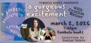 Author Cynthia Weiner will appear for a special literary event celebrating her work A Gorgeous Excitement during an intimate evening at Tombolo Books.