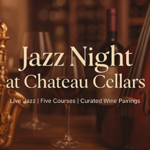 Indulge in an evening of elegance, flavor, and soulful music at the Jazz Night 5-Course Wine Dinner, hosted at the beautiful Chateau Cellars on Friday, August 22, from 6:00 PM to 10:00 PM EDT.