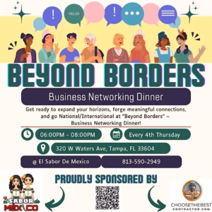 TAMPA, FL – Ready to take your networking to the next level? Join us for an unforgettable evening of global connections, meaningful conversations, and delicious cuisine at the “Beyond Borders” Business Networking Dinner.