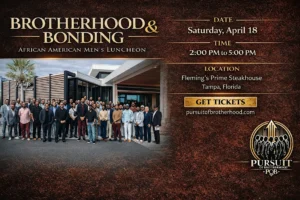 Hosted by Pursuit of Brotherhood, this gathering will be held at Fleming’s Prime Steakhouse & Wine Bar in Tampa, FL on Saturday, April 18 from 2:00 PM to 5:00 PM. The event focuses on fostering authentic relationships, personal growth, and open dialogue among attendees in a comfortable and welcoming setting.