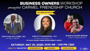 Level up your business strategies and connect with fellow entrepreneurs at the Business Owners Workshop, hosted by Carmel Friendship Church. This insightful event is designed to support business owners with practical tools, guidance, and opportunities to grow and succeed.