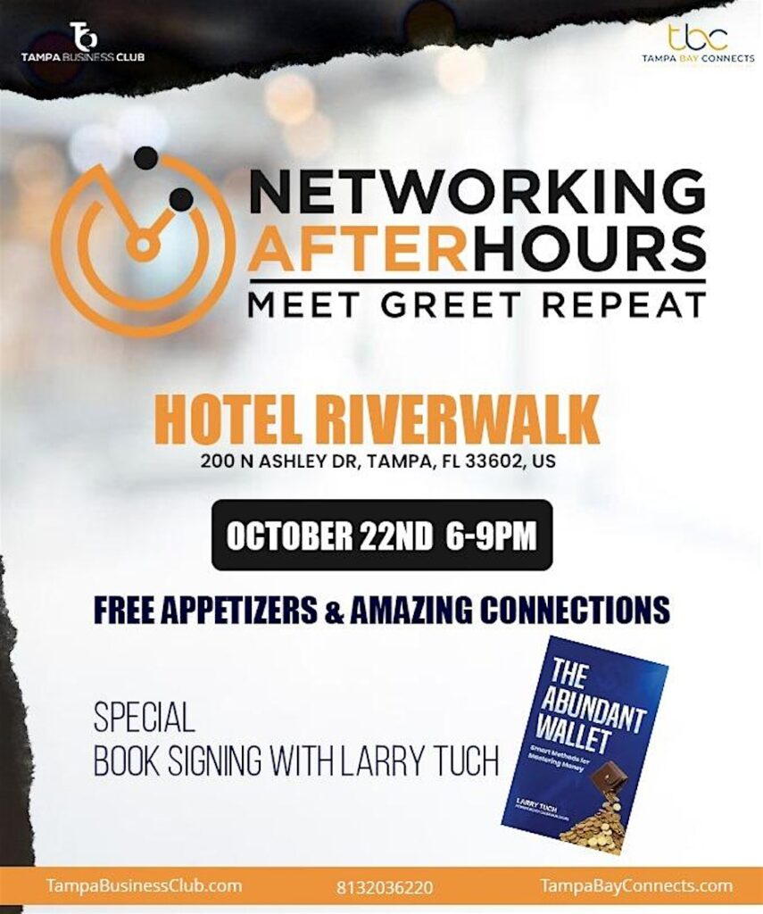 Join Tampa’s brightest minds and most ambitious professionals for an evening of inspiration and connection at the Networking After-Hours & Book Signing, happening Wednesday, October 22 from 6 PM ...