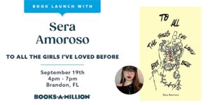 Mark your calendars, book lovers! On Friday, September 19 from 4:00 β 7:00 PM EDT, step into the world of rising literary star Sera Amoroso at an unforgettable Book Launch Celebration at Books-A-Million in Brandon!