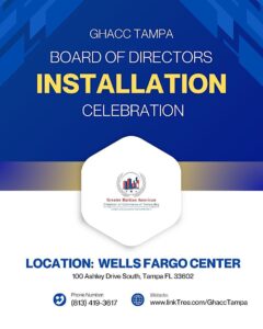 Mark your calendar for an evening of celebration, connection, and community as the GHACC Chamber of Commerce proudly hosts its Board Install Ceremony on Thursday, August 14, from 5:30 PM to 7:30 PM EDT at the City of Tampa City Center, 2555 East Hanna Avenue, Tampa, FL.