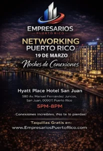 Professionals and entrepreneurs in Puerto Rico are invited to connect, collaborate, and grow at Empresarios PR: Noches de Conexiónes, organized by the Tampa Business Club. This networking event will take place on Thursday, March 19, from 5:00 PM to 8:00 PM at the Hyatt Place San Juan in San Juan, Puerto Rico.
