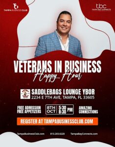 Calling all Veterans, business pros, and community supporters — mark your calendars! The Veteran’s in Business Happy Hour is taking over Tampa’s iconic Saddlebags Ybor for an evening of networking, appreciation, and good vibes.