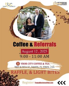 This is more than just your average morning cup of joe—it’s a buzzing opportunity to meet like-minded professionals, exchange referrals, and grow your network with purpose and flavor. Whether you’re a small business owner, entrepreneur, or simply passionate about making meaningful connections in the Tampa area, this event is for you.