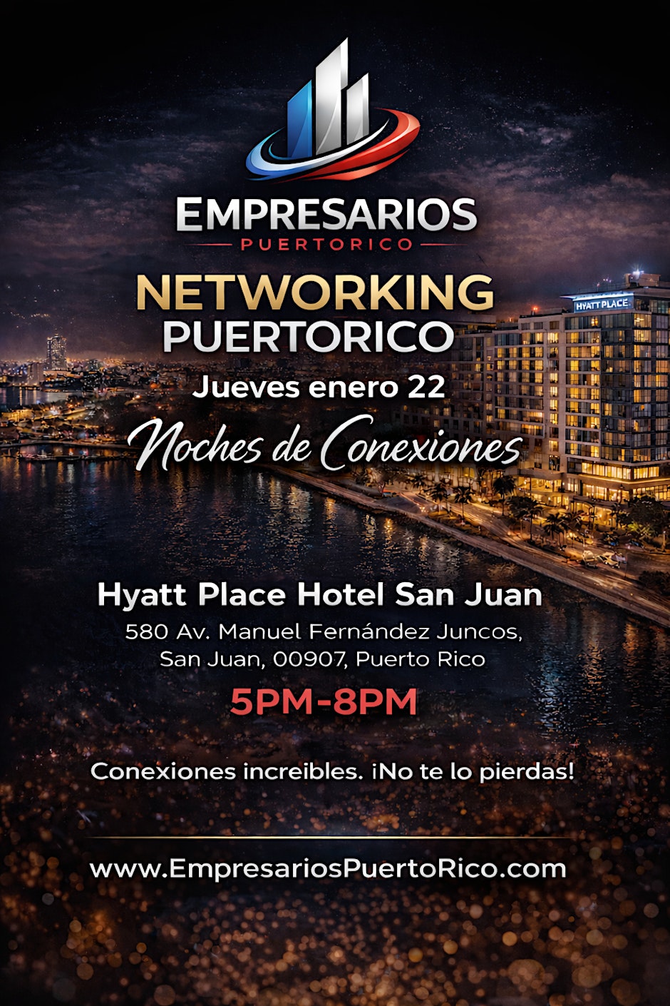 The event will take place on Monday, January 22, from 5:00 PM to 8:00 PM AST at Hyatt Place San Juan.