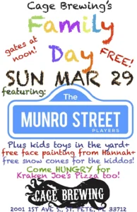 Families in the Tampa Bay area are invited to enjoy a full day of fun, entertainment, and community connection at Family Day at Cage Brewing, featuring live performances by the Munro Street Players.