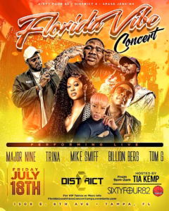 Get ready, Tampa – the party of the summer is about to hit District 8 NightClub! On July 18th, starting at 9:00 PM EDT, the Tampa Florida Vibes Concert promises to keep you dancing all night long, with electrifying performances, great music, and an unforgettable atmosphere that’ll leave you wanting more.
