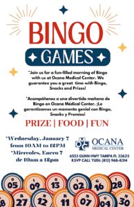 Gather your friends and enjoy a delightful morning of Free Bingo for Seniors on January 7 from 10β€―AM to 12β€―PM EST at Ocana Medical Center, located at 6553 Gunn Highway, Tampa, FL 33625. This engaging event offers a welcoming space for seniors to socialize, laugh, and play classic bingo games β€” all for free!