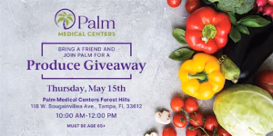 On Thursday, May 15, from 10:00 AM to 12:00 PM, head over to Palm Medical Centers – Forest Hills (116 West Bougainvillea Avenue, Tampa, FL 33612) for a Produce Giveaway designed to support local families with nutritious, farm-fresh fruits and vegetables.