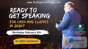 Take your speaking career to the next level at Get Speaking for Cash and Clients: Your Realistic Roadmap to Revenue! Join us on February 8 from 9 AM to 3 PM EST at Embassy Suites by Hilton Tampa USF Near Busch Gardens, 3705 Spectrum Boulevard, Tampa, FL 33612.