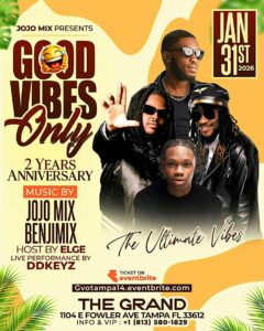 Tampa Bay Connects is resharing Good Vibes Only Tampa, a late-night experience bringing music, energy, and nightlife vibes to North Tampa. Guests can expect a high-energy atmosphere perfect for kicking off the weekend with friends and great music.