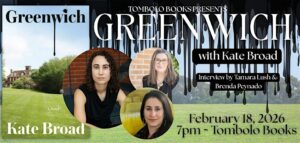 Author Kate Broad will appear for a special literary event celebrating her work Greenwich during an intimate evening at Tombolo Books.