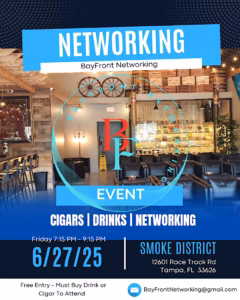 Calling all professionals, entrepreneurs, and networking enthusiasts — light up your Friday night at Cigars & Networking, happening Friday, June 27 from 7:15 to 9 PM PDT at Smoke District Westchase – Cigar & Hookah, located at 12601 Race Track Rd, Tampa, FL.