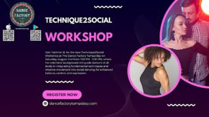 Calling all dancers, movers, and groove-getters β are you ready to elevate your skills and unleash your inner performer? Don’t miss the Technique2Social Workshop with the incredible Yashmin Wall, happening on Saturday, August 2 from 1:00 PM to 3:30 PM at The Dance Factory – Tampa Bay, located inside Westshore Plaza.