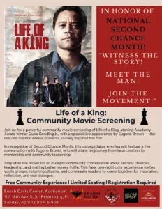 Community members are invited to attend a special screening of the inspiring film Life of a King as part of National Second Chance Month, an initiative focused on awareness, opportunity, and community support.
