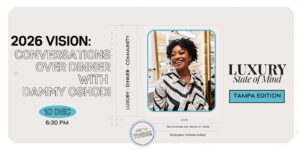 Get ready to step into an evening of meaningful conversation, connection, and inspiration at Luxury State of Mind Presents: Conversations Over Dinner — 2026 Vision! Join us on December 10th from 6:30 PM to 9:00 PM EST at Ava Tampa, where an elegant setting meets thoughtful dialogue to create an unforgettable experience.