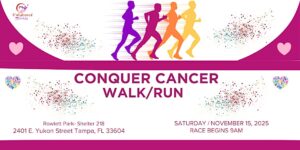 Get ready to lace up, take action, and make a difference! The Conquer Cancer Walk/Run & Health Fair is coming to Rowlett Park on Saturday, November 15, from 9 AM to 1 PM, bringing together the Tampa Bay community for a powerful day of fitness, wellness, and hope.