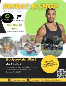 Get ready, Tampa! On Saturday, October 25, from 9 to 10 AM EDT, Fabletics is bringing the energy with an exclusive Sweat & Shop event led by celebrity trainer Julian Hampton at International Plaza and Bay Street (2223 North Westshore Boulevard).