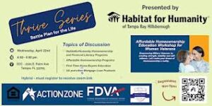 The workshop is organized by Habitat for Humanity of Hillsborough County in partnership with Action Zone, Inc., organizations dedicated to expanding housing opportunities and providing resources that help families build long-term stability through homeownership. Attendees will gain insights into affordable housing options, homebuyer programs, and practical steps toward purchasing a home.