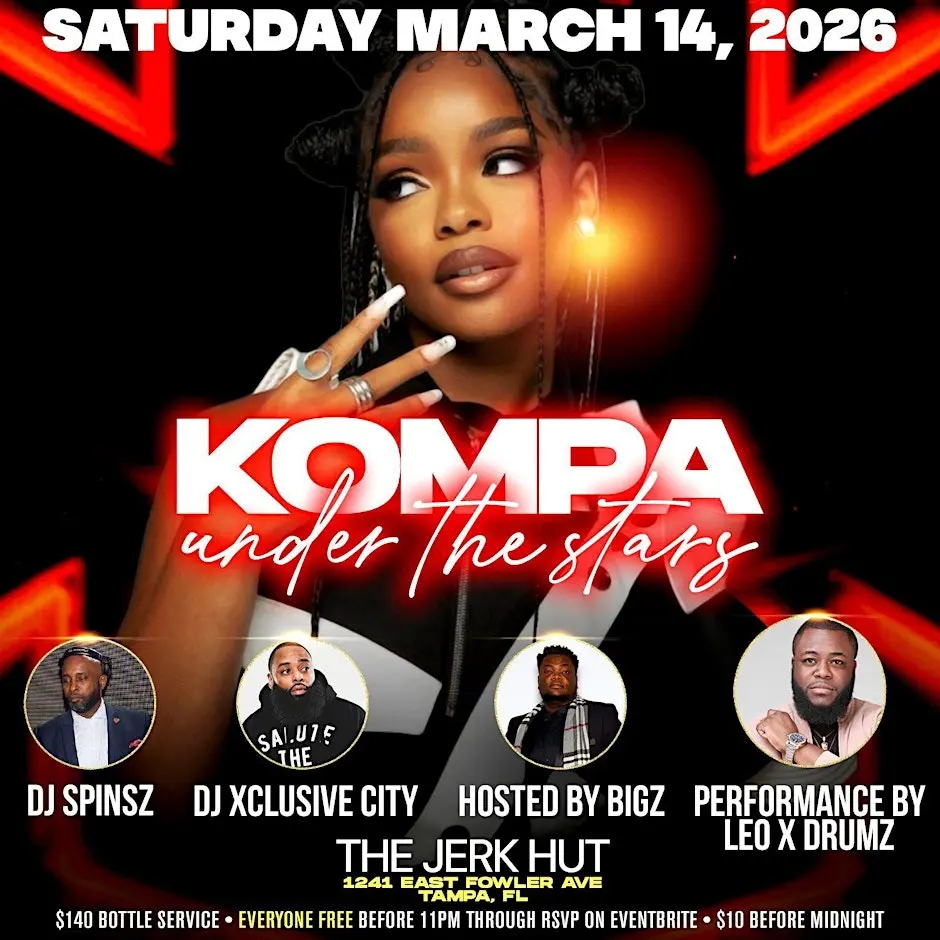 Kompa Under The Stars – Tampa Experience a vibrant evening of music, culture, and community at Kompa Under The Stars – Tampa, a lively outdoor event celebrating the rhythms of Kompa music and Caribbean culture. The event is presented by Food Clothing & Shelter Inc., an organization focused on community outreach and engagement through cultural events and initiatives. This special gathering will take place at 1241 E Fowler Ave in Tampa, bringing together music lovers and community members for an unforgettable night under the stars. Attendees can enjoy great music, a welcoming atmosphere, and an opportunity to connect with others while celebrating Caribbean culture. The featured date highlighted for this event is March 14, and additional dates may also be available through the official event listing. Event Details 📍 Location: 1241 E Fowler Ave — Tampa, FL 📅 Date: March 14 (Multiple dates available) ⏰ Time: See registration page for details 🎟 Register Here: https://www.eventbrite.com/e/kompa-under-the-stars-tampa-march-14-tickets-1979161716973?aff=ebdssbdestsearch 📱 Social Media: Instagram: https://www.instagram.com/jerkhut/p/DV35qkADpWq/ Facebook: https://www.facebook.com/foodclothingshelter/ Instagram: https://www.instagram.com/food.clothing.shelter/ #Tampa #TampaBay #StPete #Clearwater #ThingsToDo #LocalEvents #Networking #TampaBayConnects #TampaNetworking #WomenInBusiness #TampaEntrepreneurs #Startups #TampaEats #TampaNightlife #DowntownTampa #TampaEvents #TampaSocials #tampaMagazine #TampaBayMagazine TampaBusinessClub.com Tampabayconnects.com WomenImpactNetwork.com TampaBayLatinChamber.com InGateConsulting.com 🔗 Register Here: https://www.eventbrite.com/e/kompa-under-the-stars-tampa-march-14-tickets-1979161716973?aff=ebdssbdestsearch Tampa Bay Connects is a community discovery and media platform. We do not organize, host, manage, or operate the events featured on this site. All events, trademarks, logos, photographs, and promotional materials are the property of their respective owners and are displayed for informational and promotional purposes only. Our content is shared to help connect the community with local experiences and is sourced from public event listings, organizers, or official promotional channels. Full credit is given to the original event organizers, and direct links to official event pages are provided whenever available. Inclusion on TampaBayConnects.com does not imply sponsorship, partnership, or endorsement by Tampa Bay Connects, unless explicitly stated. tampabayconnects