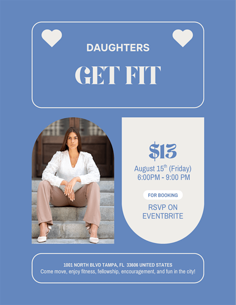 📅 Friday, August 15 · 6:00 – 9:00 PM EDT 📍 1001 North Boulevard, Tampa, FL 33606 🎟️ Register Now on Eventbrite It’s time to move with meaning! Join us for Daught.ers GET FIT, an empowering evening of fitness, sisterhood, and faith designed to ignite your body, spirit, and confidence. This isn’t just a workout—it’s a movement. Expect a high-energy blend of group fitness, uplifting community vibes, and motivating messages crafted for strong, faith-filled women like YOU. 🔥 What to Expect: Dynamic group fitness suitable for all levels A supportive community of like-minded women Inspirational moments to fuel your mind and soul Location: 📍 1001 North Boulevard, Tampa, FL 33606 🕕 Time: 6:00 – 9:00 PM 🎟️ Spots are limited—lock in your place today! #Tampa #TampaBay #StPete #Clearwater #ThingsToDo #LocalEvents #Networking #TampaBayConnects #TampaNetworking #WomenInBusiness #TampaEntrepreneurs #Startups #TampaEats #TampaNightlife #DowntownTampa #TampaEvents #TampaSocials#tampaMagazine #TampaBayMagazine TampaBusinessClub.com Tampabayconnects.com WomenImpactNetwork.com TampaBayLatinChamber.com https://www.eventbrite.com/e/daughters-get-fit-tickets-1513432520409?aff=ebdssbdestsearch tampabayconnects