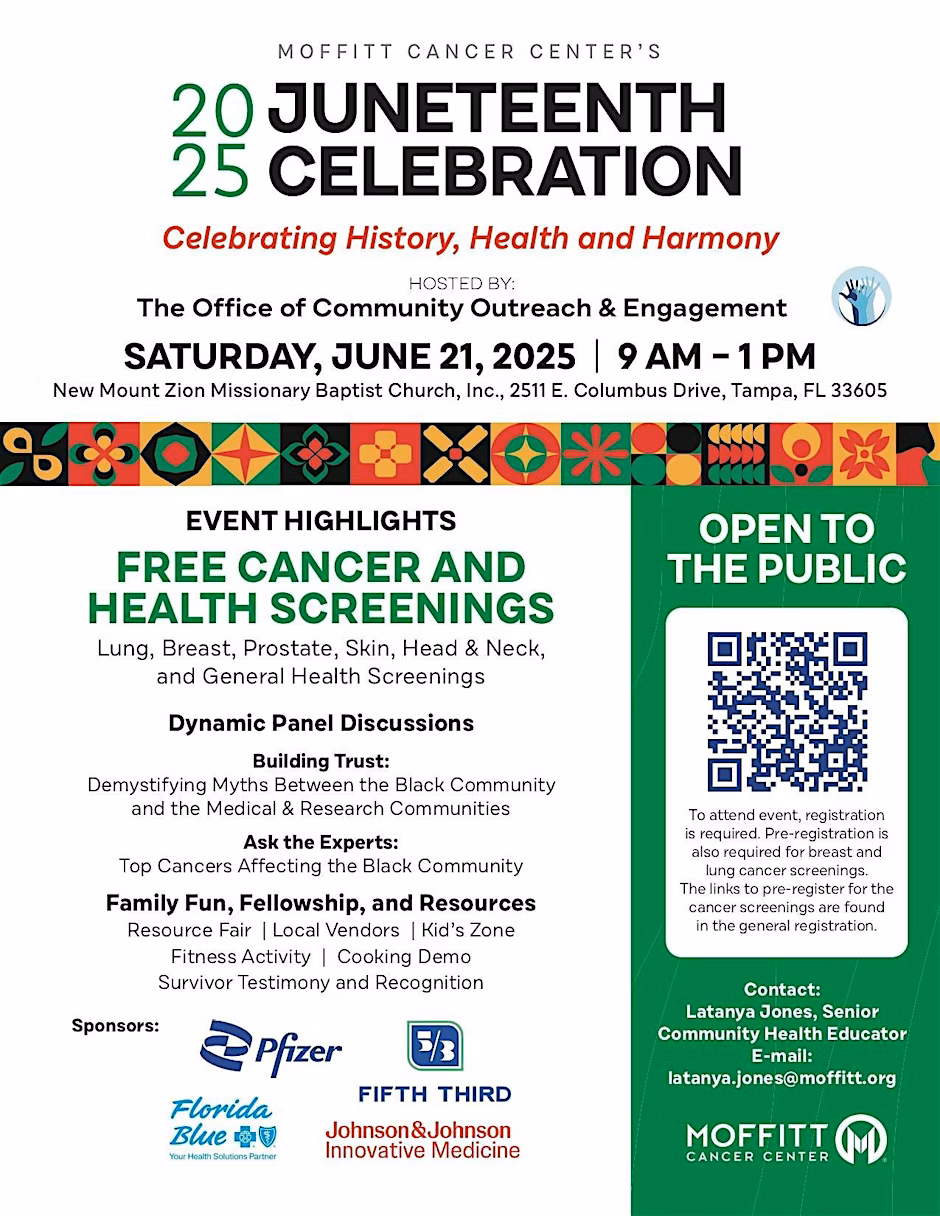 Tampa, get ready to come together in unity and pride! The 2025 Juneteenth Celebration: Celebrating History, Health & Harmony is happening Saturday, June 21st from 9:00 AM to 1:00 PM at New Mt Zion Missionary Baptist Church (2511 East Columbus Drive, Tampa, FL 33605) β and youβre invited to be a part of this powerful day of remembrance, education, and community healing. This free, family-friendly event honors the legacy of Juneteenth while highlighting the importance of wellness, togetherness, and progress in our community. Expect inspiring speakers, health screenings, local vendors, cultural performances, activities for all ages, and more β all designed to educate, empower, and celebrate. Whether you’re looking to learn, connect, or simply enjoy a meaningful day with your neighbors, this celebration is your chance to reflect on the past and move forward in unity. π Reserve Your Free Spot Today! Registration is encouraged to help us plan for your experience. π Sign up now on Eventbrite https://www.eventbrite.com/e/2025-juneteenth-celebration-celebrating-history-health-harmony-tickets-1376192652269?aff=ebdssbdestsearch Letβs honor our history, elevate our health, and celebrate harmony β together. #Tampa #TampaBay #StPete #Clearwater #ThingsToDo #LocalEvents #Networking #TampaBayConnects #TampaNetworking #WomenInBusiness #TampaEntrepreneurs #Startups #TampaEats #TampaNightlife #DowntownTampa #TampaEvents #TampaSocials#tampaMagazine #TampaBayMagazine TampaBusinessClub tampabayconnects.com WomenImpactNetwork TampaBayLatinChamber https://www.eventbrite.com/e/2025-juneteenth-celebration-celebrating-history-health-harmony-tickets-1376192652269?aff=ebdssbdestsearch tampabayconnects