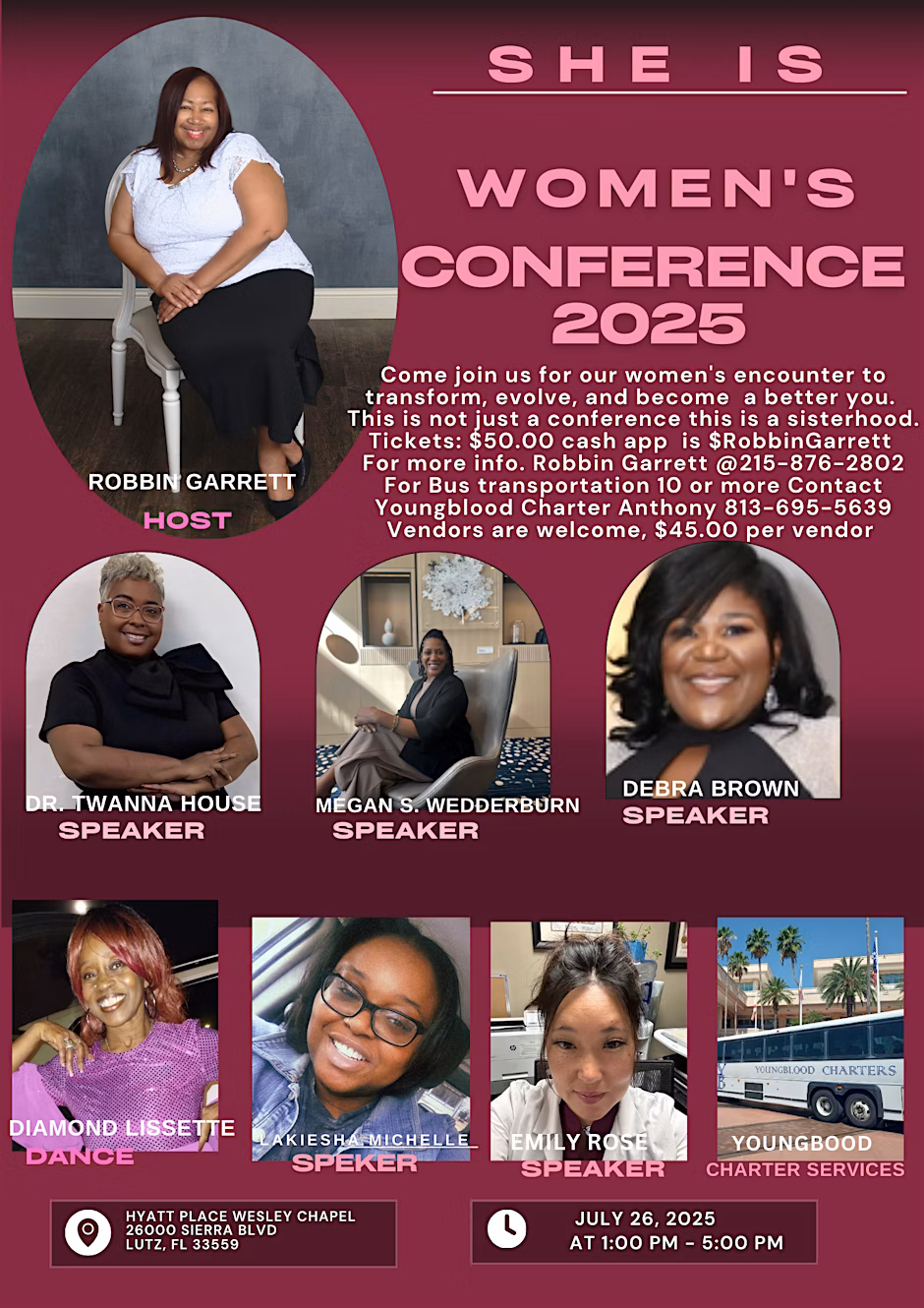 ποΈ Mark your calendars for Saturday, July 26, because the She Is Womenβs Conference is coming to Temple Terrace, FL, and itβs an event you wonβt want to miss! β° From 1 PM to 5 PM EDT at 9730 North 56th Street, this dynamic gathering promises an afternoon filled with empowerment πͺ, inspiration β¨, and connection π€ for women from all walks of life. π₯ Whether youβre looking to ignite your passion β€οΈβπ₯, expand your network π, or simply recharge your spirit πΏ, the She Is Womenβs Conference offers a powerful platform to celebrate womanhood π©βπ¦°π©πΎβ𦱠and unlock your full potential π. With engaging speakers π€, interactive sessions π, and opportunities to connect with like-minded women π, this event is designed to uplift and energize β‘. ποΈ Ready to be part of something special? Secure your spot today by registering here: She Is Womenβs Conference Tickets https://www.eventbrite.com/e/she-is-womens-conference-tickets-1285038898939?aff=ebdssbdestsearch πΈ Follow the journey and updates on Instagram: @thesheisconf π² β³ Donβt wait β join us and be inspired to live boldly, lead confidently, and shine brighter than ever before! β¨π #Tampa #TampaBay #StPete #Clearwater #ThingsToDo #LocalEvents #Networking #TampaBayConnects #TampaNetworking #WomenInBusiness #TampaEntrepreneurs #Startups #TampaEats #TampaNightlife #DowntownTampa #TampaEvents #TampaSocials#tampaMagazine #TampaBayMagazine TampaBusinessClub tampabayconnects.com WomenImpactNetwork TampaBayLatinChamber https://www.eventbrite.com/e/she-is-womens-conference-tickets-1285038898939?aff=ebdssbdestsearch tampabayconnects