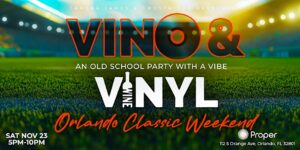 Orlando, get ready for an unforgettable evening! On November 22 from 5 PM to 10 PM (EST), Proper Orlando at 112 South Orange Avenue, Orlando, FL 32801 will host Vino & Vinyl β An Old School Party with a Vibe, where classic hits meet fine wine and a lively, nostalgic atmosphere.