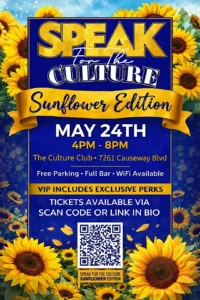 The community is invited to attend Speak for the Culture – Sunflower Edition, an inspiring cultural event designed to bring people together through expression, creativity, and meaningful conversations. Organized by Speak for the Culture, this special gathering encourages attendees to celebrate culture, share ideas, and connect with others in a welcoming and vibrant environment.
