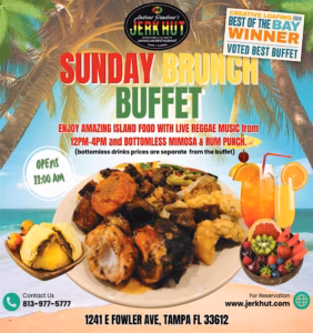 Turn your Sunday into a tropical escape at the Sunday Brunch: Full Caribbean Buffet with Live Reggae Music, happening on June 22 from 11:00 AM to 8:00 PM EDT at 1241 E Fowler Ave, Tampa.