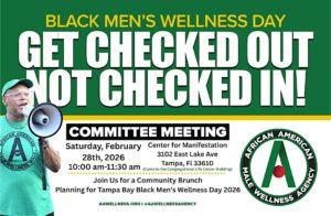 Tampa Bay Connects is resharing the upcoming Tampa Bay Black Men’s Wellness Day Free Community Brunch Meeting, organized by AA Wellness Agency. The event will take place on February 28 from 10:00 AM to 11:30 AM EST at The Center for Manifestation – Congregational Life Center Building in Tampa, Florida.