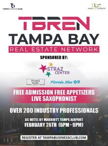 Tampa Bay Connects is pleased to reshare details for the Tampa Bay Real Estate Network Networking Social, organized by the Tampa Business Club. This networking event will take place on February 26 from 6:00 PM to 9:00 PM EST at the AC Hotel Tampa Airport, bringing together real estate professionals, investors, and local business leaders for an evening of connections and collaboration.