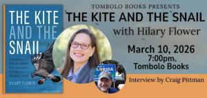 Hilary Flower will appear at Tombolo Books for The Kite and the Snail: An Evening with Hilary Flower, a special literary event featuring discussion and reading centered on her work.