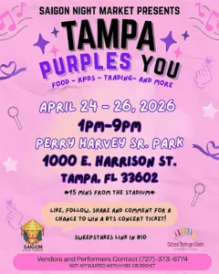 The Tampa Purples You Festival, a vibrant multi-day community celebration taking place at Perry Harvey Sr. Park in Tampa, FL. Organized by the Saigon Night Market team, this festival brings together food, culture, entertainment, and local vendors for a lively experience designed to celebrate community spirit and diversity.