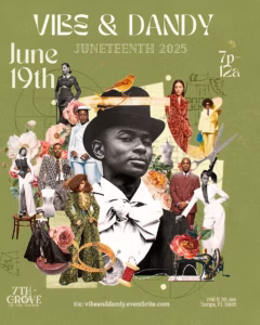 This Juneteenth, step into elegance, power, and unapologetic Black excellence at Vibe & Dandy: A Juneteenth Ode to Black Dandyism, happening Thursday, June 19 from 7 PM to 11:30 PM at the iconic 7th + Grove in Ybor City.