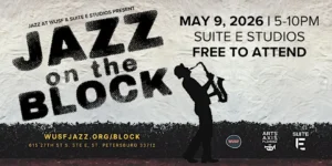 WUSF Jazz Presents: Jazz on the Block will take place on Saturday, May 9, from 5:00 PM to 10:00 PM at 615 27th St S Ste E, St. Petersburg, Florida. This lively event brings together jazz lovers, local talent, and the community for an unforgettable night filled with rhythm, culture, and connection.